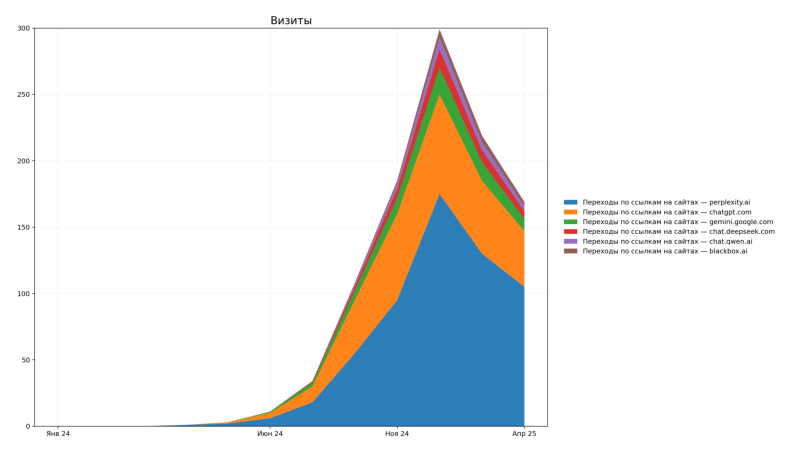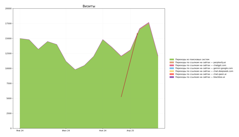 Идёт рост трафика из нейросетей, но пока что он не сопоставим с поисковым